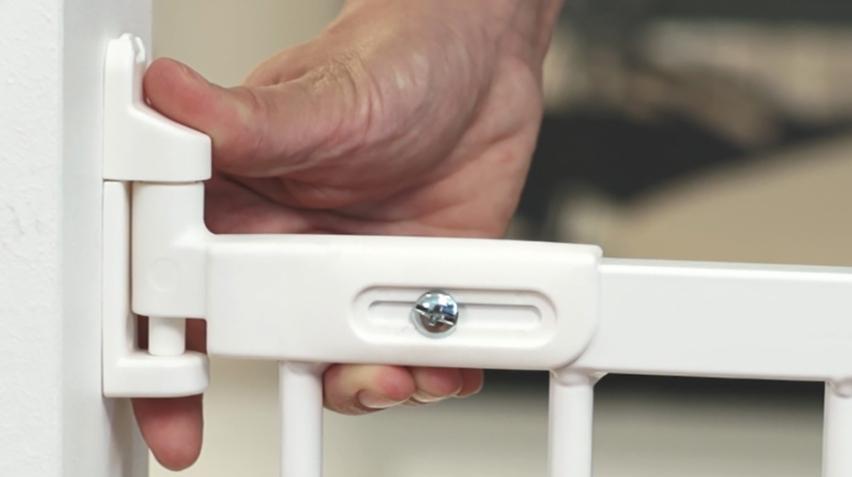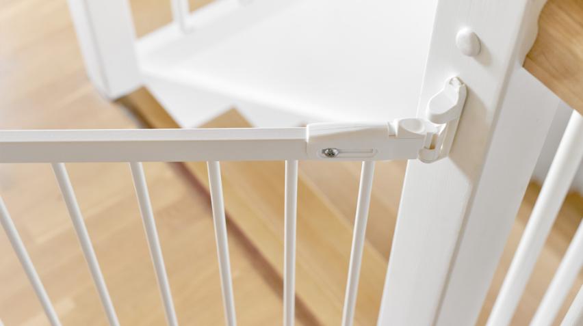 Når gitteret er skruet fast til væggen eller dørkarmen, gør den unikke og børnesikrede Quick Release-funktion det nemt og hurtigt at fjerne igen, hvis du f.eks. er i gang med rengøringen eller får gæster. Gitteret kan fjernes uden brug af værktøj.