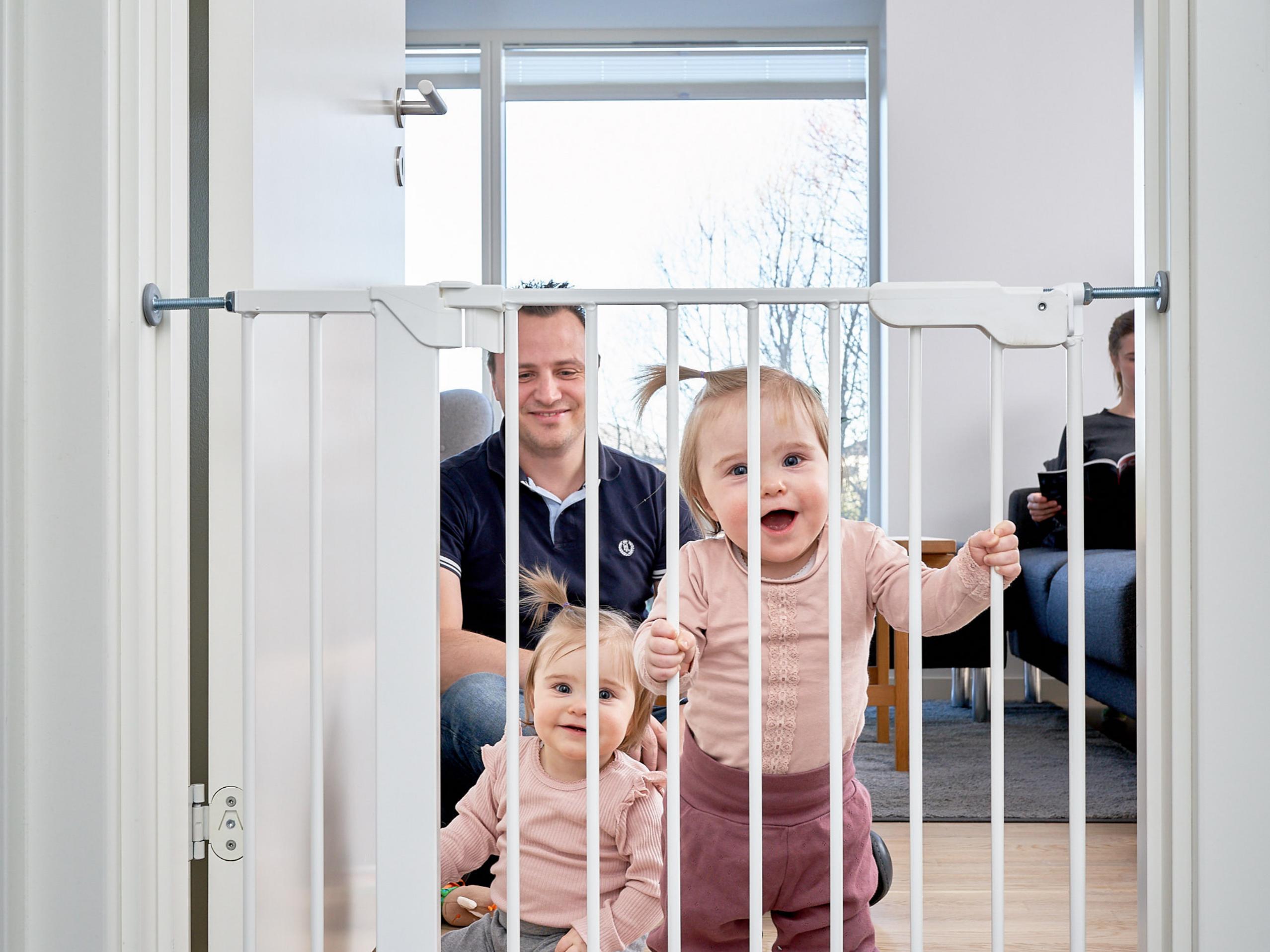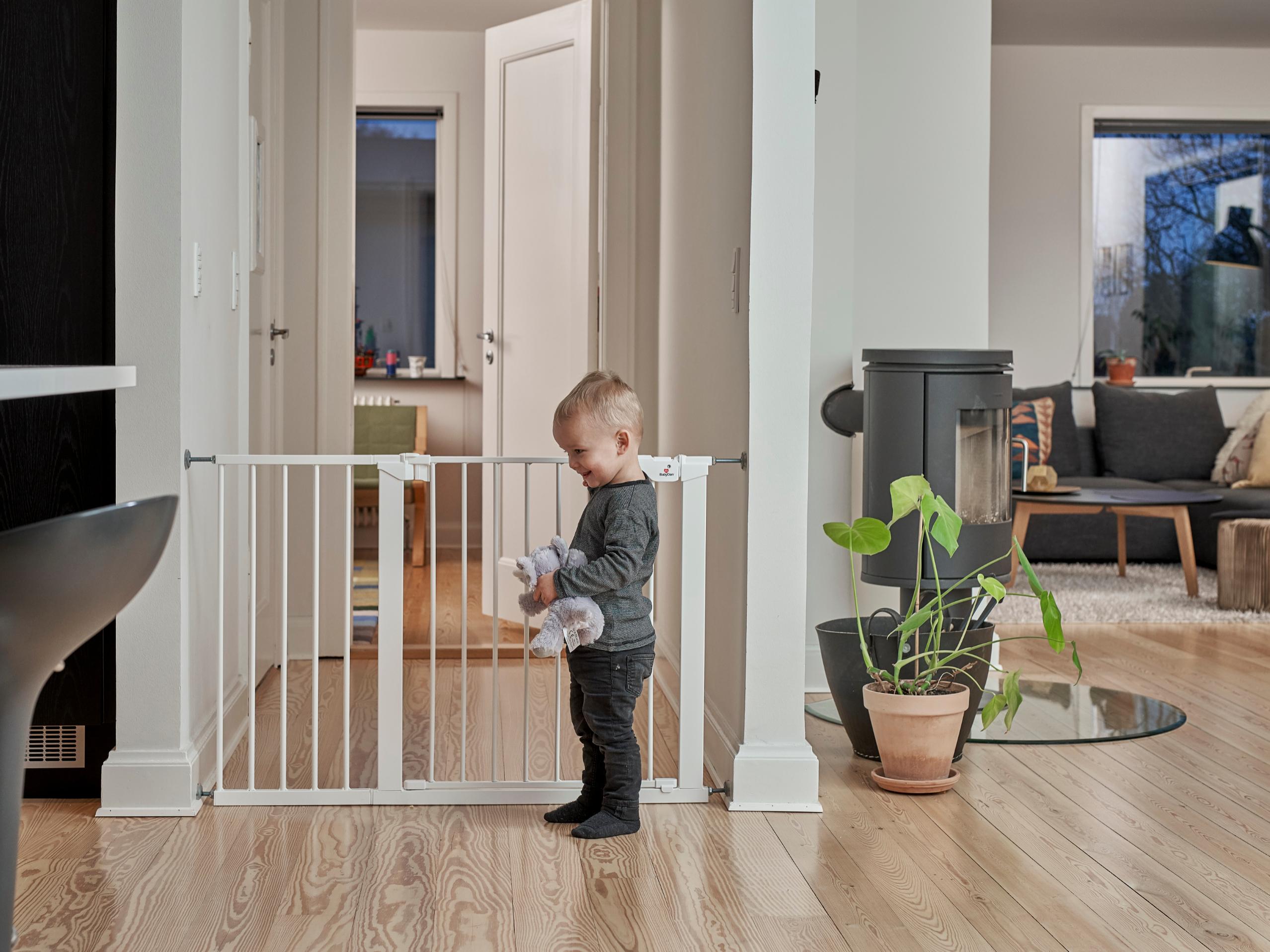 Med et sikkerhedsgitter kan du afskærme dit barn fra områder, hvor du forudser, at et uheld kunne ske. Sikkerhedsgitteret kan forhindre barnet i at falde ned af trappen, brænde sig på brændeovnen eller komme ind i rum, som ikke er egnet til små størrelser.