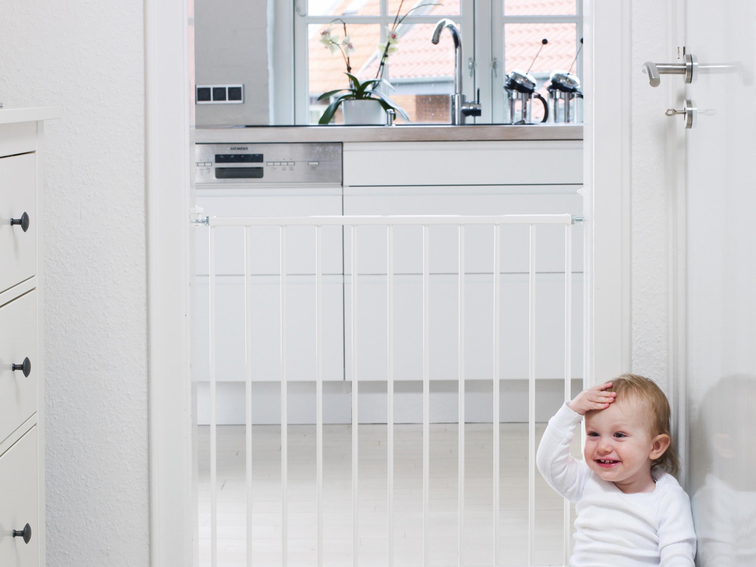 Et sikkerhedsgitter er en super god hjælp til at gøre dit hjem sikkert for dit barn, når han eller hun begynder at kravle og gå. Med et gitter kan du nemlig børnesikre trappen, rum, brændeovnen og døren ved at afskærme barnet fra de områder.