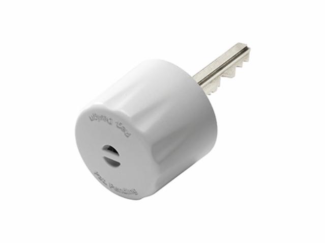 Undgå at dit barn låser sig inde. KeyGuard sættes på nøglen og drejes uden at nøglen inden i drejer med. Den dobbelte låsemekanisme gør, at du nemt kan bruge låsen ved at trykke den ind og dreje.