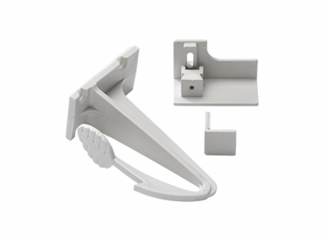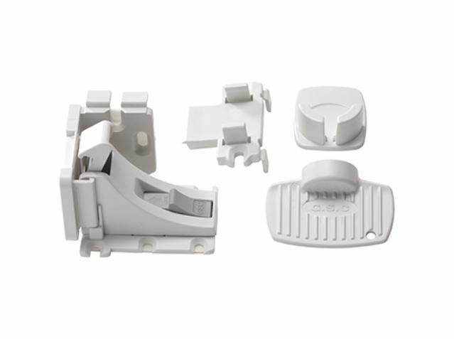 Undgå at børnene får fingrene i klemme. Sikkerhedslåsen er simpel at bruge og kan kun åbnes af voksne. Den kan monteres med stærk selvklæbende tape og passer til de fleste skuffer og skabe.
