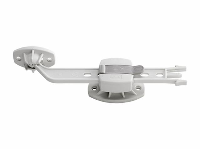 Med skydedørslåsen kan du børnesikre skydedøre og køleskabe med dobbeltlåger, så børnene ikke får fingrene i klemme. Låsen passer til låger fra 55 mm til 140 mm og er let at montere.
