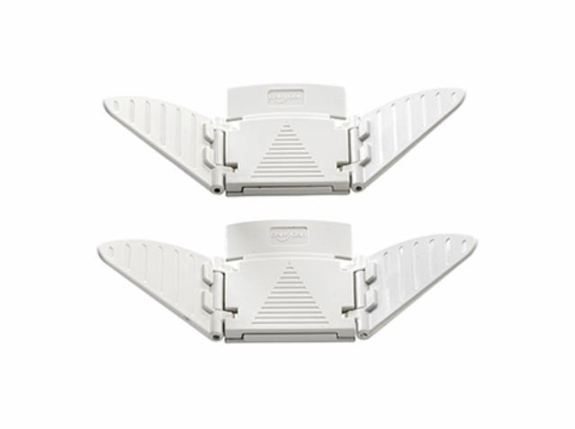 Hjørnebeskytterens afrundede yderside forebygger, at dit barn slår sig, hvis han eller hun løber ind i skarpe kanter på borde og reoler. Den monteres med selvklæbende tape.